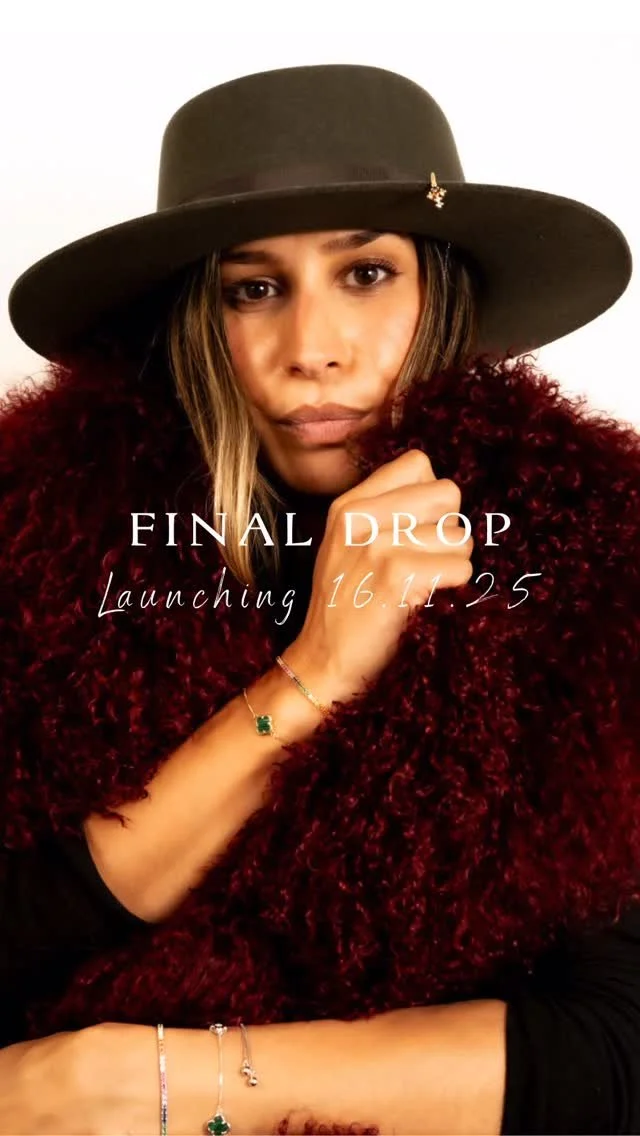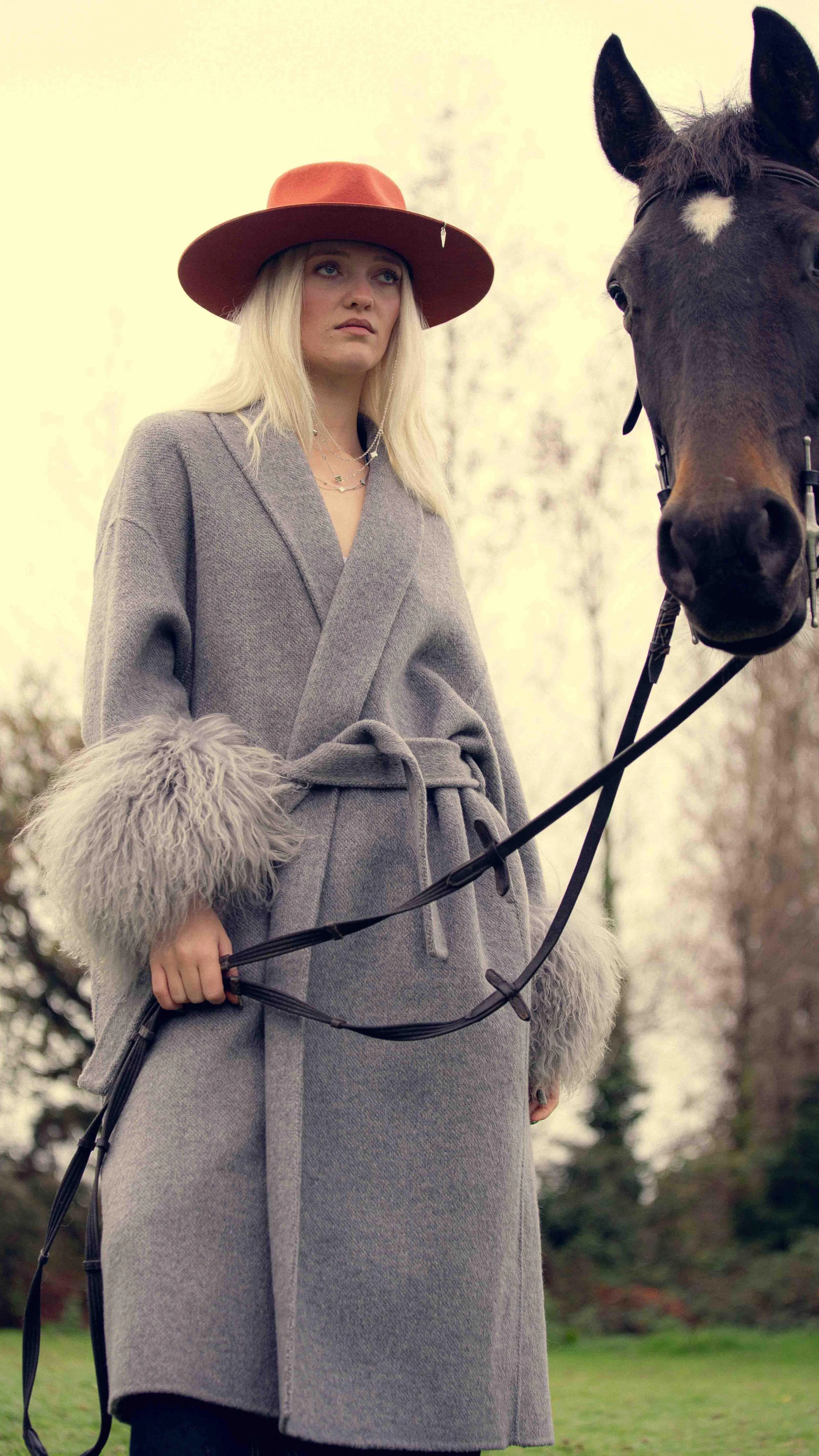 Worn here with our Lamorna Beige Mongolian Fur Micro Jacket and Roisin Gold Layered Necklace